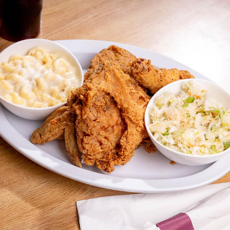 Small ½ Pan $30.00 | Large full Pan $50.00 • With cheddar, green beans, buttered corn, hushpuppies, broccoli w/ cheese sauce, coleslaw.